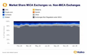 The 6 AA-rated platforms have an average governance score of 73, compared to only 47 on average for all other exchanges in the ranking. This confirms that in 2026, governance and the ability to meet regulatory requirements globally for cryptocurrency exchanges will become key differentiators. For instance, the implementation of MiCA across Europe reinforces this dynamic by imposing a harmonized framework for authorization, transparency, and supervision. The regulatory pressure for exchanges operating in Europe will accelerate starting July 2026, when only authorized MiCA operators will be permitted to operate.